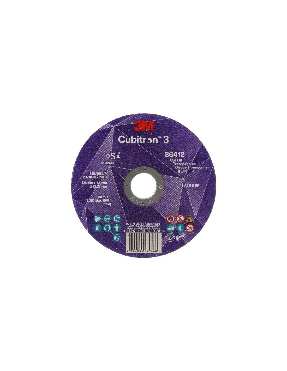 El disco de corte Cubitron™ 3 de 3M™ crea cortes perpendiculares utilizando el borde exterior del disco, lo que lo hace ideal para cortar metal, tubos de acero inoxidable, tubos de escape, abrazaderas y fijaciones oxidadas, entre otros. Además, el disco de corte Cubitron™ 3 de 3M™ cuenta con la tecnología de grano PSG de 3M, una tecnología innovadora de unión molecular exclusiva diseñada con estructuras afiladas y angulares que se fracturan continuamente para crear puntas afiladas. Estas puntas limpias y afiladas ayudan a crear un abrasivo que corta de forma más rápida, genera menos calor y dura más que los abrasivos convencionales. Los abrasivos de alto rendimiento Cubitron™ de 3M™ están diseñados para profesionales que necesitan obtener un mayor rendimiento de sus equipos. Si elige el disco de corte Cubitron™ 3 de 3M™, disfrutará de la próxima generación de abrasivos de alto rendimiento.