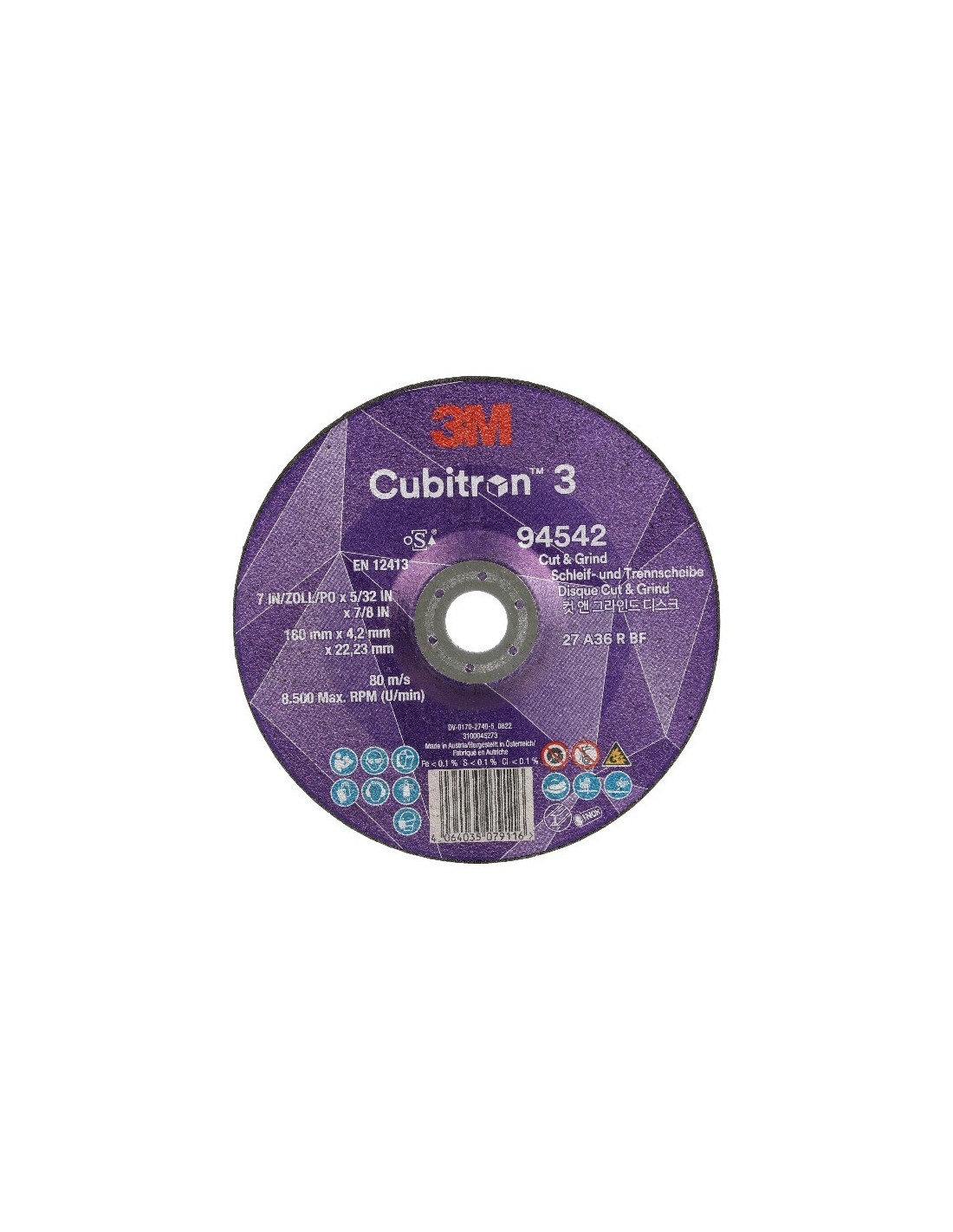 Disco de corte y desbaste. Ofrece hasta un 5 % más de tasa de corte que los abrasivos de alto rendimiento 3M™ Cubitron™ II, lo que ayudar a reducir el tiempo y la presión necesarios para llevar a cabo la tarea. Utiliza grano PSG con un nuevo diseño, con tecnología de unión molecular, diseñado con estructuras afiladas y angulares que se fracturan continuamente para crear puntas afiladas que se desgastan de forma uniforme, generan menos calor al trabajar y optimizan la rotura del mineral.