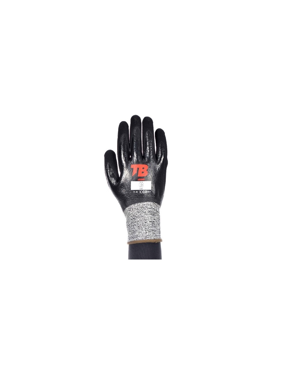 HPPE fibras de polietileno de alta densidad, a igual peso es 10 veces más resistente que el acero. Gran resistencia al corte y a la abrasión. Recubrimiento de nitrilo caucho sintético con buena resistencia a aceites, lubricantes y productos derivados del petróleo. Nitrilo Sandy grip en palma, que proporciona máxima agarre.