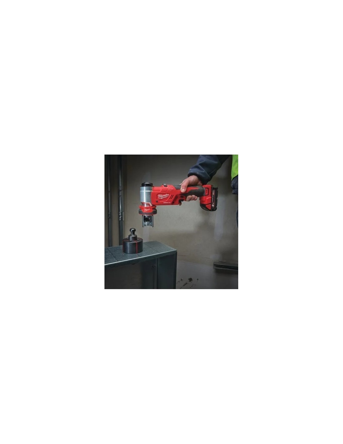 La herramienta efectúa las perforaciones hasta 100mm de diámetro en chapa de acero de 3mm o 2,5mm en acero inoxidable