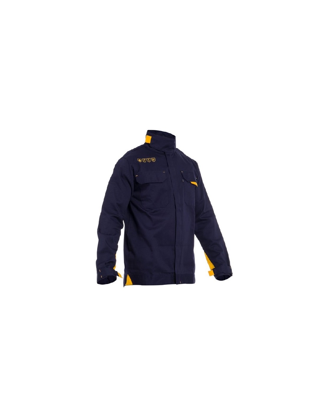 Cazadora multinorma. Ignífuga, antiestática y protección contra arco eléctrico. Cierre de cremallera con tapa de solapa de velcro. 2 bolsillos en el pecho con solapa de velcro. Ajuste de velcro en los puños de las mangas y el cuello para mayor seguridad. Tejido: 99% algodón y 1% fibra antiestática. Gramaje: 260 gramos.